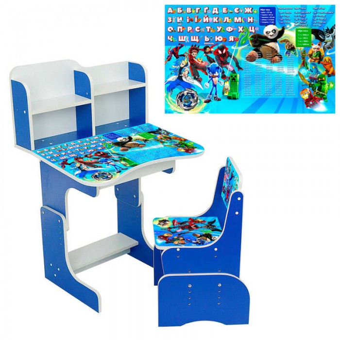 Парта шкільна "МУЛЬТМІКС" ПШ 052 ЛДСП, колір синя, 69*45 см, + 1 стілець, з пеналом в магазині autoplus, з доставкою по Україні, краща ціна