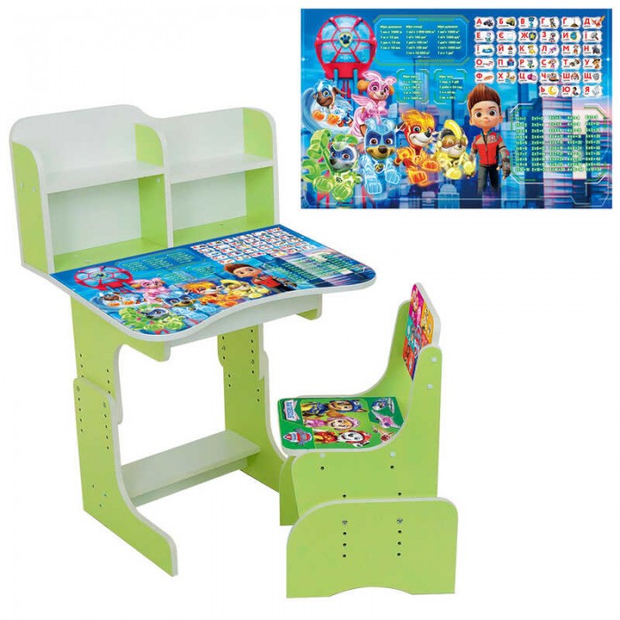 Парта шкільна "Цуценята" ПШ 050 ЛДСП, колір зелений, 69*45 см, + 1 стілець, з пеналом в магазині autoplus, з доставкою по Україні, краща ціна