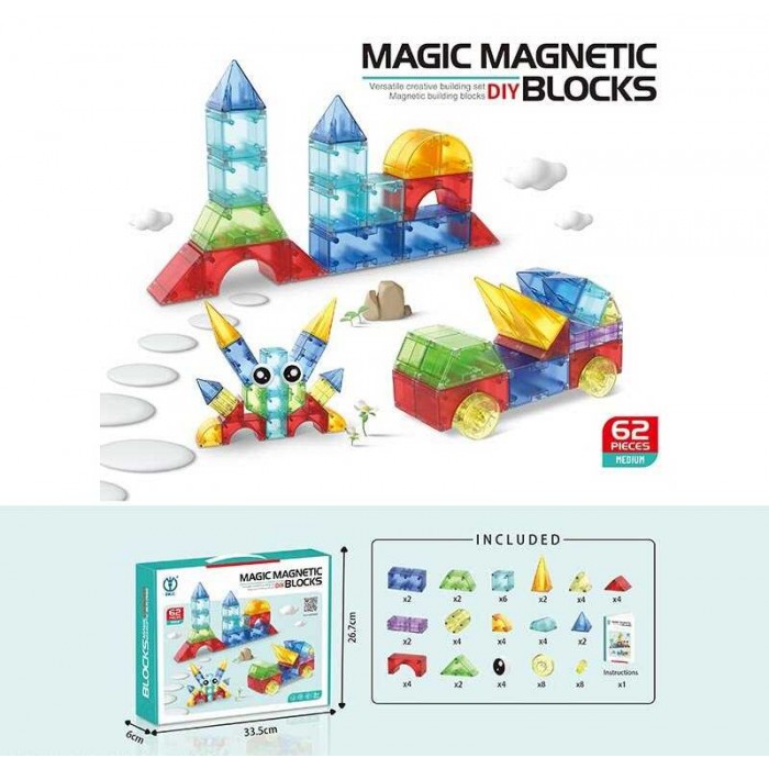 Конструктор магнітний 8807 (20/2) 62 деталі, інструкція у магазині autoplus кращі ціни ,оптовий продаж