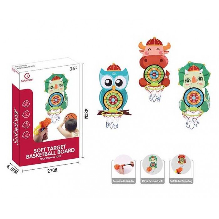 Дитяча іграшка баскетбол YL 1022-39 (60) мішень, бластер, 3 патрони на присосці, насос, баскетбольний м'яч та сітка, у коробці у магазині autoplus кращі ціни ,оптовий продаж